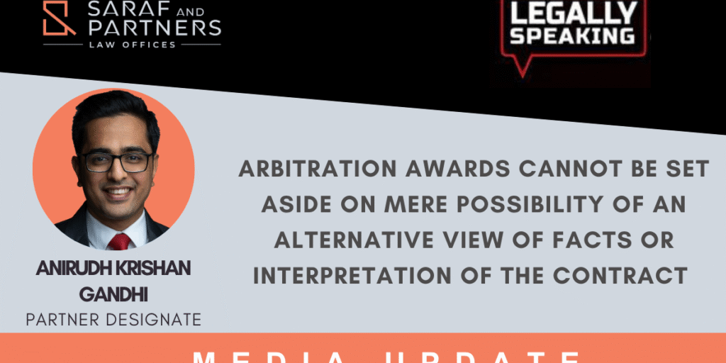 Anirudh Krishan Gandhi shared his valuable insights on recent judgement by: Justice Chandrachud, Justice Narasimha, Justice Pardiwala about “Arbitration Awards cannot be set aside on mere possibility of an alternative view of facts or interpretation of the contract” on Legally Speaking with Tarun Nangia, aired on NewsX. Watch the full discussion below: https://youtu.be/L91NS55T15M